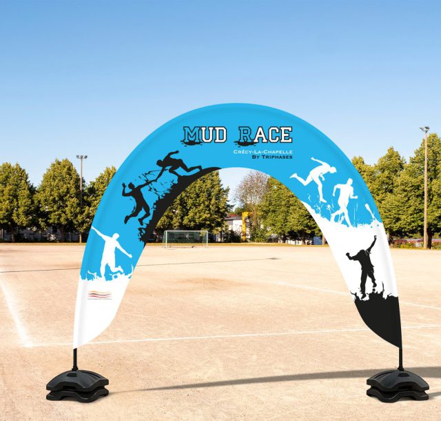 Solutions personnalisables pour communiquer tout en préservant le passage pour vos évènements extérieurs. Arches demi-lune ou complètes et barnums sur mesure.