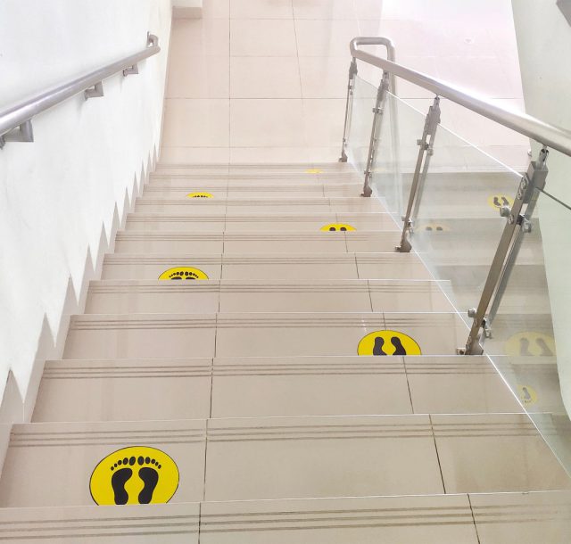 Fléchage temporaire ou permanent des sites industriels ou collectivités. Le balisage au sol possède une excellente résistance à l’usure.