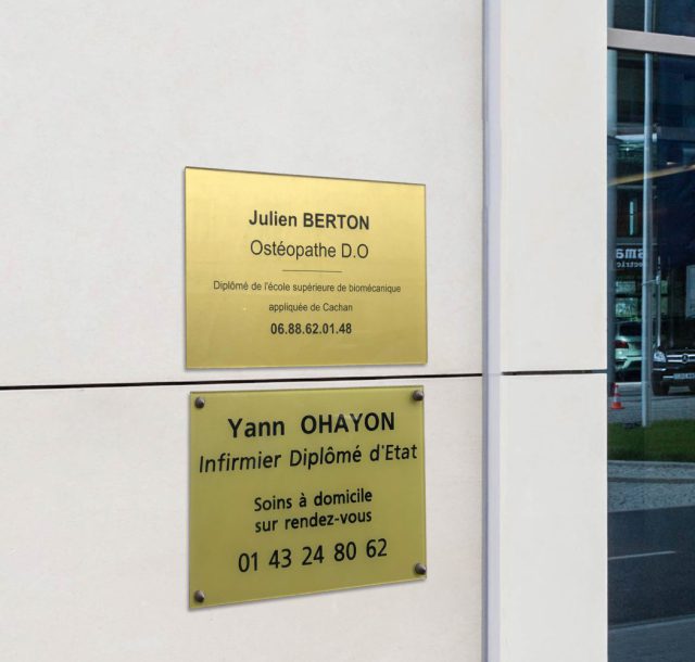 Idéale pour les professions libérales, les hôpitaux ou les syndics de copropriété. Gravure fine ou découpe laser, la plaque professionnelle se décline à l’infini et sur-mesure.